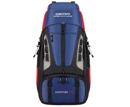 Unknown Binding Gear Adventure 75L Extra Large Water Resistant Rucksack/Travel bag/For Men & Women(Navy – Red)